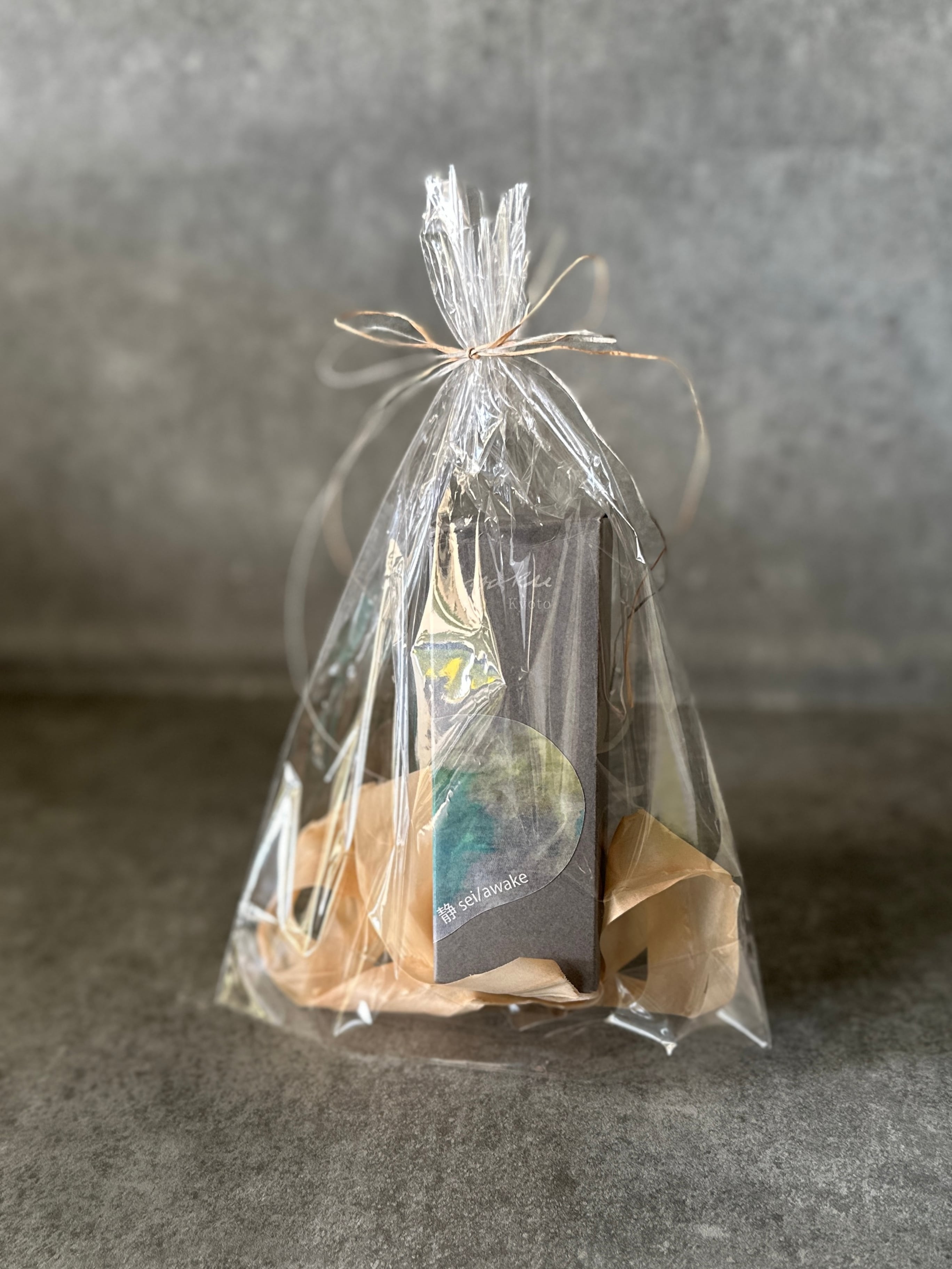 人気の「和 敬 静 寂」ミストをいずれか1本お買い上げで、このようにラッピングをしてお届けします。お好きな香りをお選びください